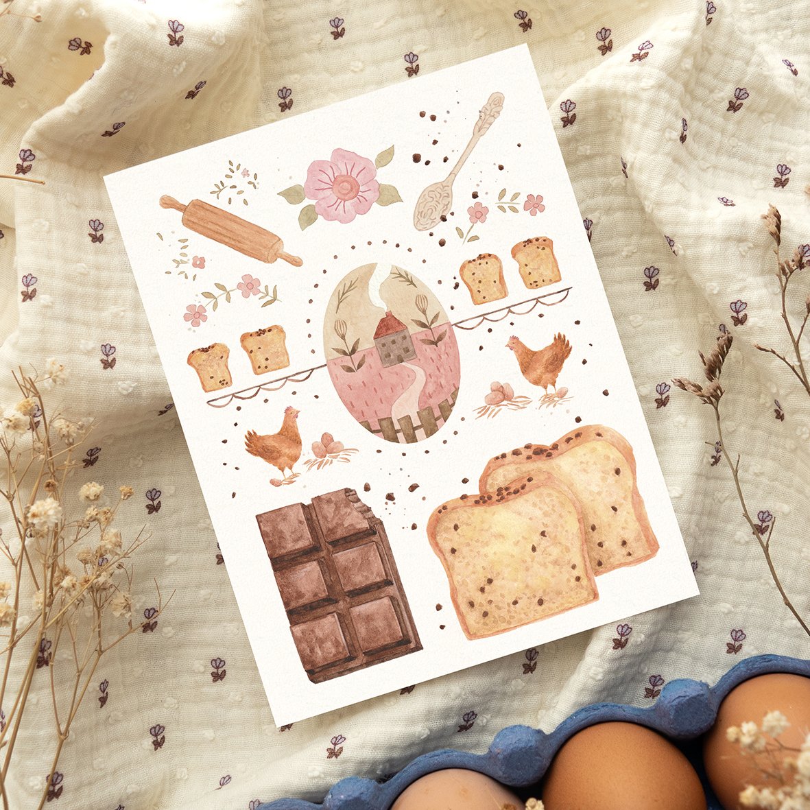 Carte | Recettes | Illustration aquarelle - Brioche aux pépites choco