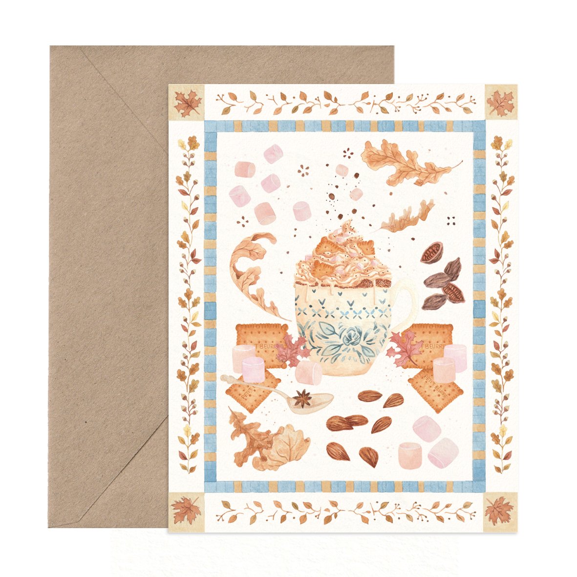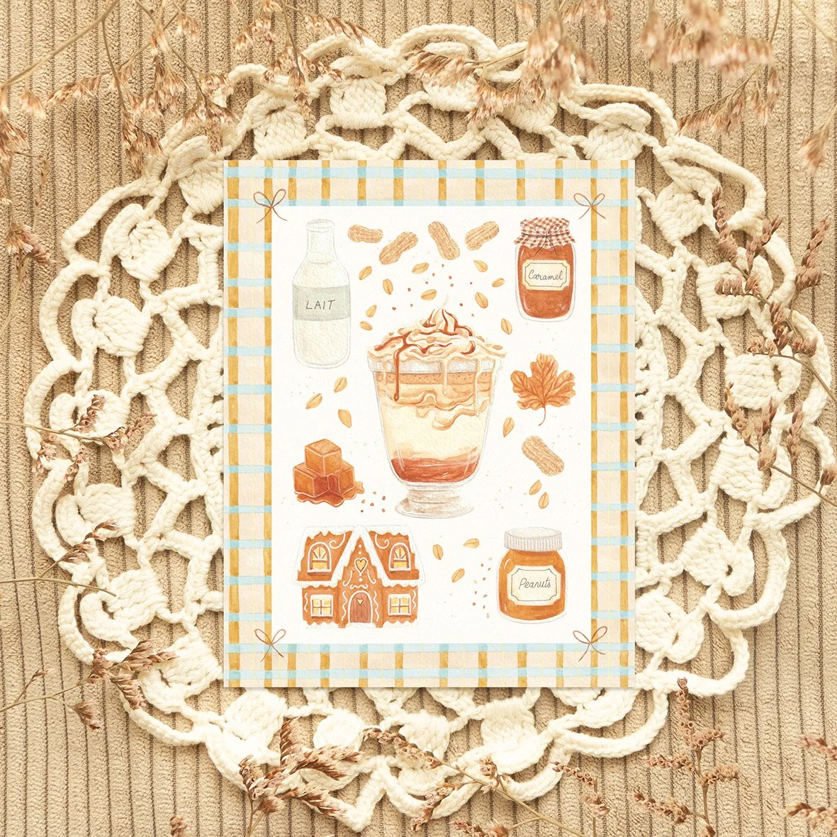Carte | Lot de cartes - Campfire choco, Caramel & cacahuète, Spéculoos crush | illustrations aquarelle