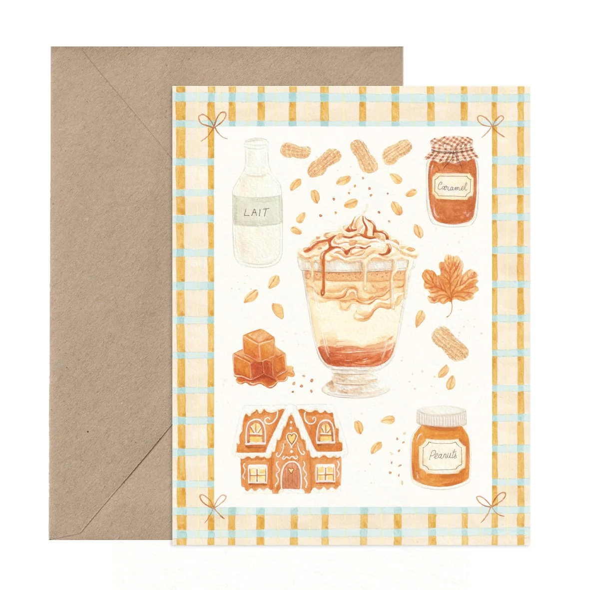 Carte | Recettes | Illustration aquarelle - Caramel & cacahuète